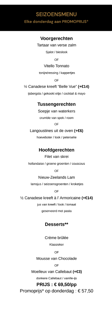 Elk seizoensmenu wordt met zorg samengesteld en weerspiegelt zowel creativiteit als respect voor traditie.